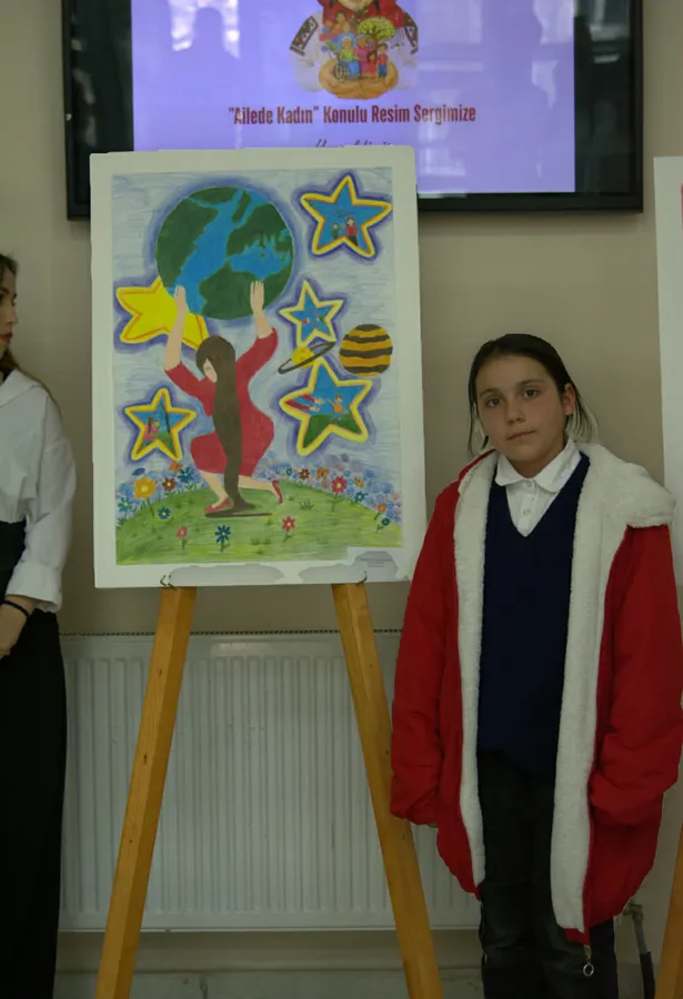 Ardahan Aile ve Sosyal Hizmetler İl Müdürlüğü’nün Kadına Yönelik Şiddetle Mücadele Programı kapsamında düzenlediği "Ailede Kadın" temalı resim yarışmasında, öğrencilerin eserleri sergilendi ve dereceye girenlere ödülleri verildi.