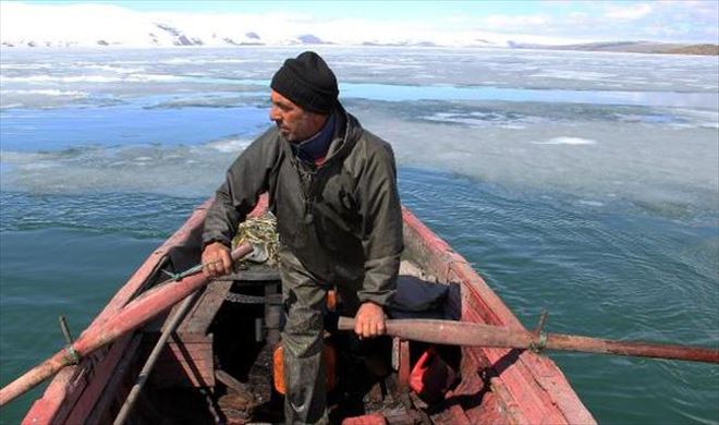 Kışın yüzeyi yaklaşık 1 metre kalınlığa ulaşan buzla kaplanan Doğu Anadolu Bölgesi´nin en büyük ikinci gölü olan Çıldır Gölü´nün buzları çözülmeye başladı. Sandallarına binerek kürek çekmeye başlayan balıkçılar da "Vira bismillah" diyerek ağlarını sulara bırakmaya başladı.