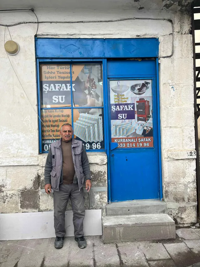 Çıldır ilçesine bağlı Aşık Şenlik mahallesi halkından Kurban Ali Şafak yaklaşık 30 yılını belediye su işleri bölümünde tamamladıktan sonra emekli olarak ilçede su tesisat işiyle ilgili işyeri açtı.
