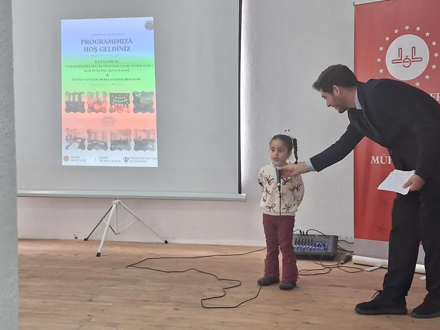 Eksikliklerin giderilip hazırlıkların tamamlanmasıyla birlikte 2025 yılında "Etkinliklerle Değerlerimi Öğreniyorum Programı" çerçevesinde "Yaz Eğitimi" ile eğitime tekrar başladı ve 2025-2026 eğitim- öğretim yılında da devam etti. Bugün burada ilk dönemi bitirmenin sevincini yaşıyoruz. Bu vesileyle Öğrencilerimizi tebrik ediyor, Hocamıza ve Velilerine verdikleri emek ve gösterdikleri azami gayret için teşekkür ediyorum. Diyanet Gençlik Merkezleri, 2018 yılından itibaren cami müştemilatlarında ve uygun mekanlarda açılmaya başlanan, gençlere yönelik yaygın din eğitimi ve sosyal gelişim odaklı önemli bir hizmet alanıdır.