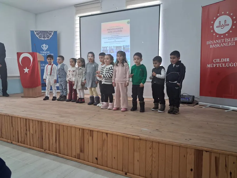 Çıldır İlçe Müftülüğü 4-6 Yaş "Etkinliklerle Değerlerimi Öğreniyorum Programı" Kur'an Kursu Dönem Sonu ve Diyanet Gençlik Merkezi Açılış Programı, büyük bir heyecanla gerçekleştirildi