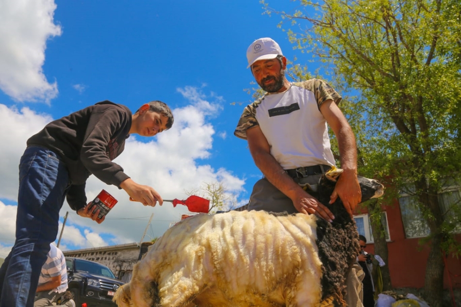 Çıldır ilçesinde Ardahan Damızlık Koyun Keçi Yetiştiricileri Birliği Başkanı Salman Gürbüz’e ait Salman Oğulları Küçükbaş İşletmesini ziyaret eden ilçe Kaymakamı Fatih Bayram koyun kırptı.
