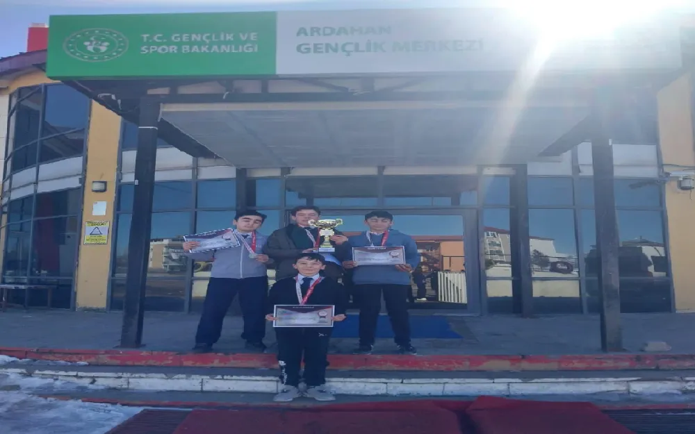 Ardahan Gençlik Merkezinde düzenlenen müsabakalara Çıldır’dan katılan Şehit Taner Karadeniz Ortaokulu öğrencileri gösterdikleri performansla organizasyona damga vurdu. Muhammet Ali Korkut, Ahmet Emin Atakişi, Alperen Arda Aydemir ve Bilal Karagöz’den oluşan takım, üstün bir mücadele sergileyerek il birinciliğini elde etti.