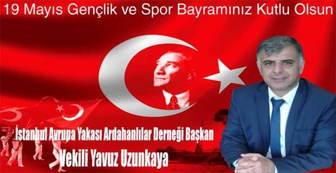 İstanbul Avrupa Yakası Ardahanlılar Derneği Başkan Vekili Yavuz Uzunkaya 19 Mayıs Atatürk´ü anma ve Gençlik Spor Bayramı münasebetiyle mesaj yayınladı. Uzunkaya yayınladığı mesajında ;