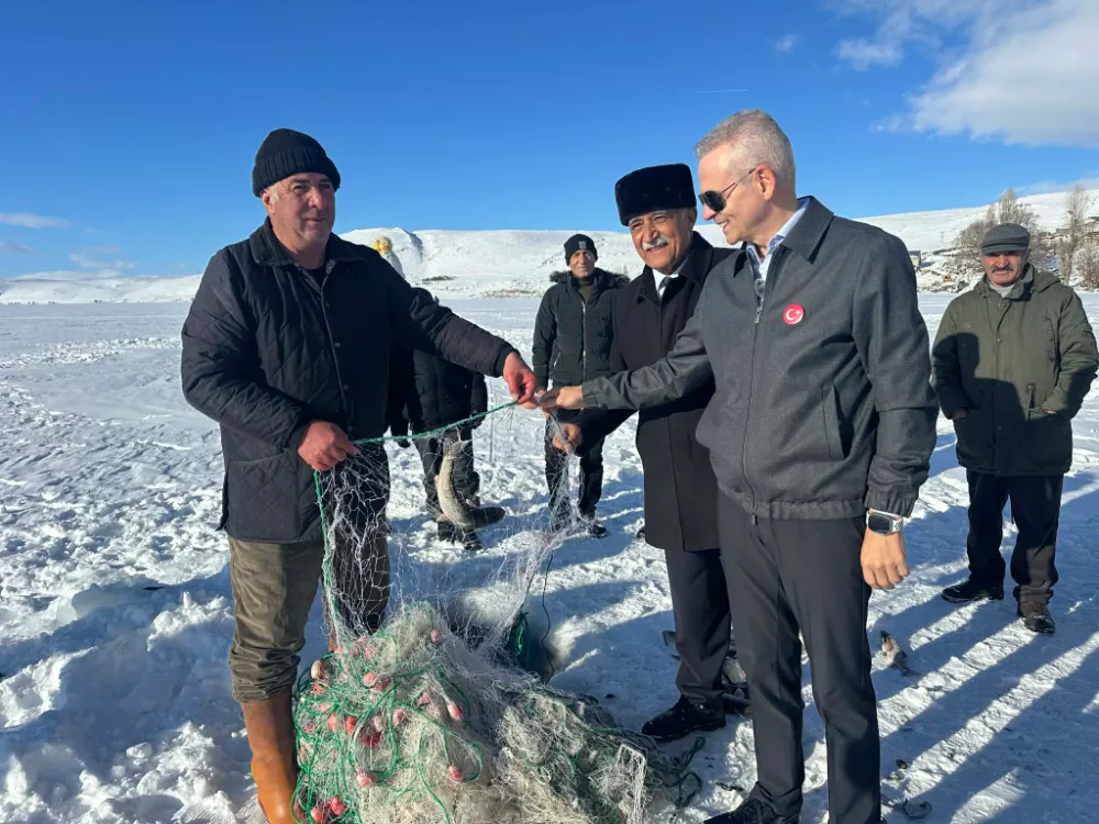 14 Şubat tarihinde yapılacak olan Çıldır Gölü Kristal Buz Festivali öncesinde Vali Mehmet Fatih Çiçekli, Kaymakam Barış Aytürk ve Çıldır Belediye Başkanı Kemal Yakup Azizoğlu balık ağı çekerek vatandaşları etkinliklere davet etti.